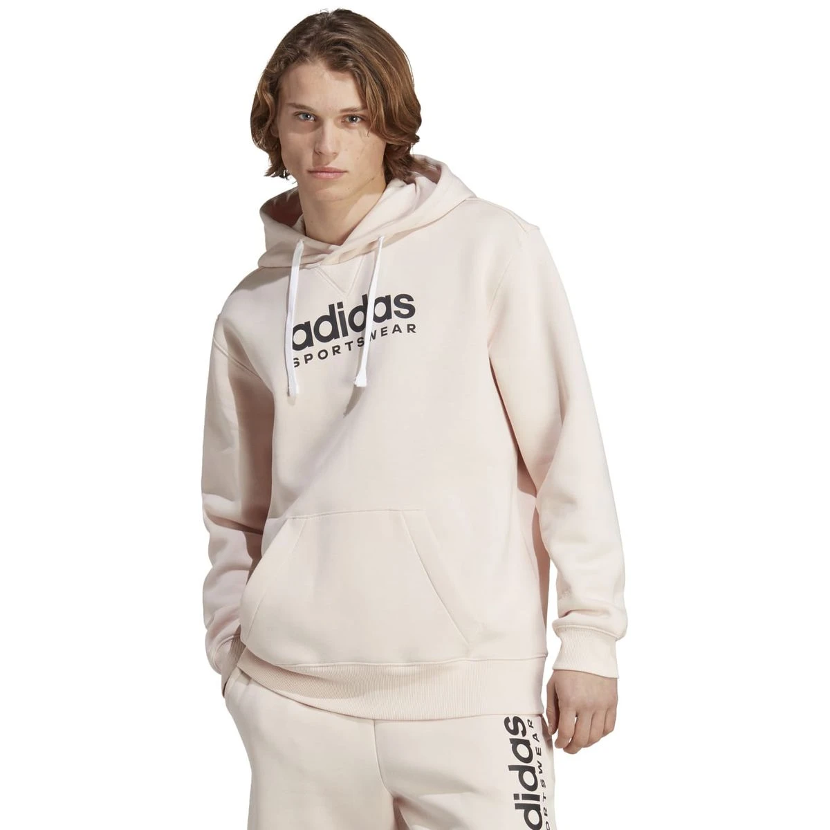 There’s no feeling quite like throwing on a cosy hoodie after a great workout. It’s the reward you’ve earned in the form of soft warmth. This is the official uniform of mellowing out, relaxing those muscles and going about your day in tranquillity. A clean adidas sportswear graphic sits front and centre for a minimal look that you can wear anywhere. A minimum of 70% of this product is a blend of recycled and renewable materials. • Loose fit • Drawcord-adjustable lined hood • Kangaroo pocket • Ribbed cuffs and hem
