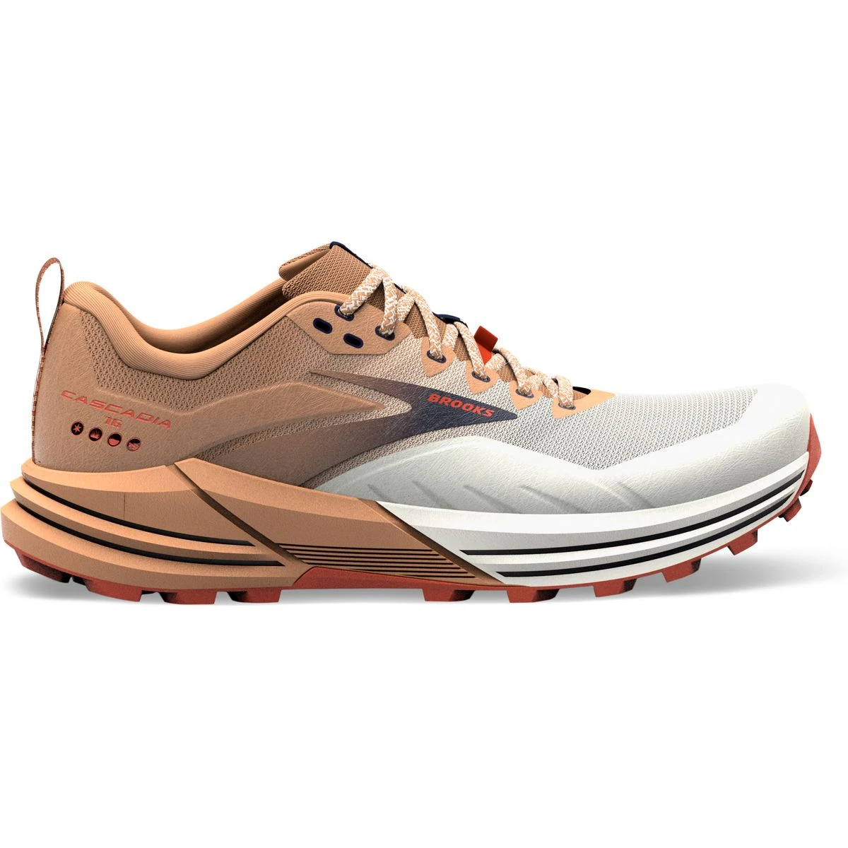 Die neue Zwischen- und Außensohle passt sich der Form des Bodens an und verbessert so die Stabilität des Schuhs.Das geupdatete Ballistic Rock Shield schützt vor Kieselsteinen und Geröll und passt sich besser an unebenes Gelände an.Brooks neue DNA LOFT v2 Zwischensohle macht den Cascadia 16 5 % softer und 20 % leichter als den Cascadia 15.