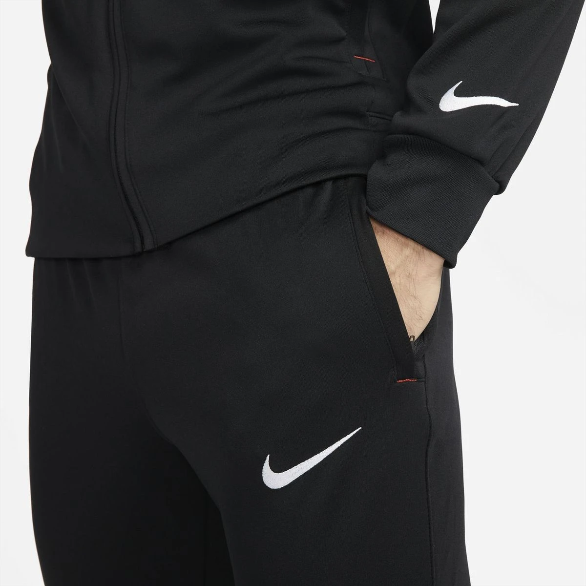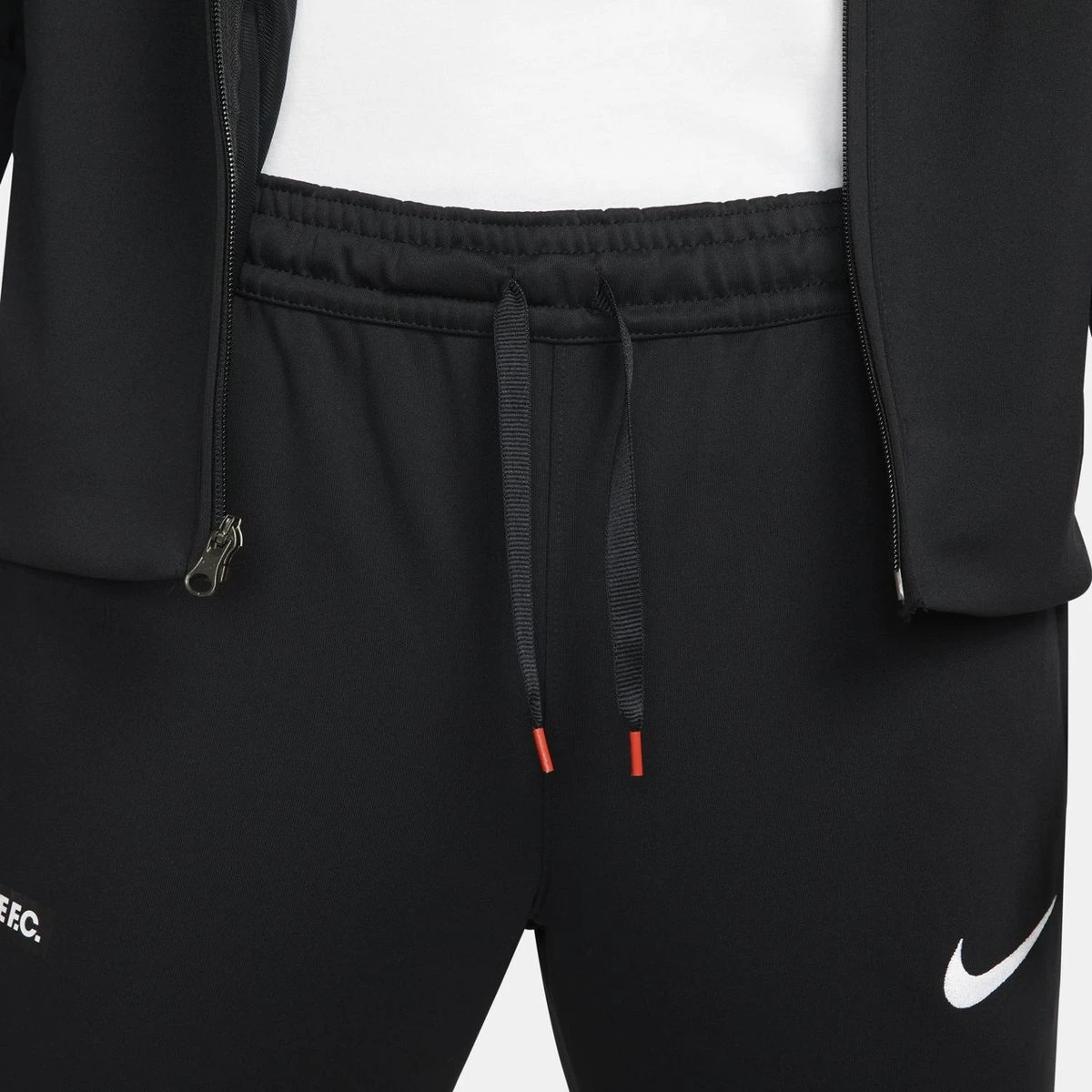 Der Nike F.C. Der Dri-FIT Trainingsanzug besteht aus schweißableitendem Material und sorgt dadurch sowohl beim Training als auch in der Freizeit für angenehm kühlen Tragekomfort.