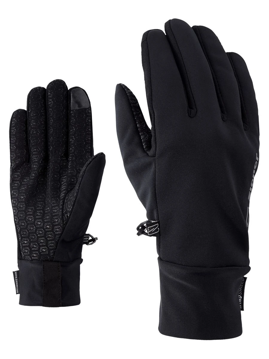 Die funktionellen ZIENER Multisporthandschuhe IVIDURO TOUCH sind dank ihrer ZIENER WINDSHIELD Membran winddicht, atmungsaktiv sowie wasserabweisend und bewahren die Hand vor dem Auskühlen durch den Windchill-Effekt. Das elastische Softshell-Material, die zusätzlichen extra warmen Materialien und die griffige, bedruckte Innenhand machen ihn zu einem treuen Begleiter im Winter. Das enganliegende Bündchen am Handgelenk sorgt für eine gute Passform und mit der TOUCH Funktion können Touchscreens bedient werden, ohne dass dabei die Handschuhe ausgezogen werden müssen. Der Handrücken ist mit dekorativen, reflektierenden Elementen versehen.
